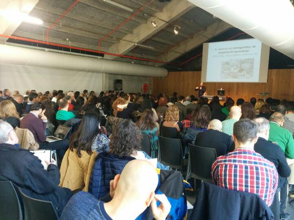 Iniciamos la mañana con el gran Manuel Area (@manuel_area), con su ponencia "Reinventar la escuela. enseñar y aprender en la red", donde nos habló de la situación actual en materia de educación y la necesidad de enseñar y aprender en red. Algo que no es nuevo, puesto que tiene ya 100 años, figuras como Dewey, Montessori, Vigotsky, Freinet, Freire, Decroly o Piaget, precursores de la Escuela Nueva, ya apostaban en su época por el aprendizaje a través de la experiencia, la construcción del saber, la educación personalizada, el aprendizaje social y el método por proyectos. Por lo tanto la figura del docente cambia, para convertirse en un creador de experiencias educativas valiosas. El fin de esto, es educar al ciudadano digital, al "homo digitalis", como ciudadano de saberes, competencias y valores democráticos.